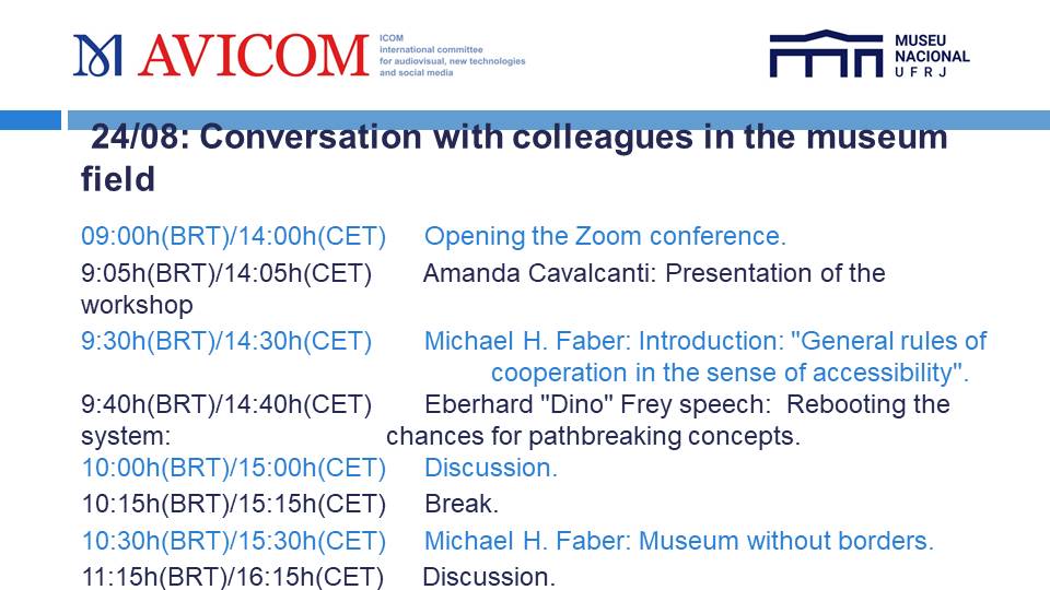 The question of which digital technologies and which social media can be used to overcome barriers and involve diverse groups of society in museum work was the topic of a tandem workshop between AVICOM and the Museu Nacional in Rio de Janeiro in August 2021.